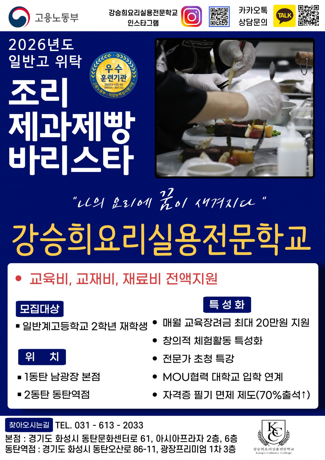 강승희요리실용전문학교는 학생의 내일을 함께 고민하고, 함께 준비합니다.