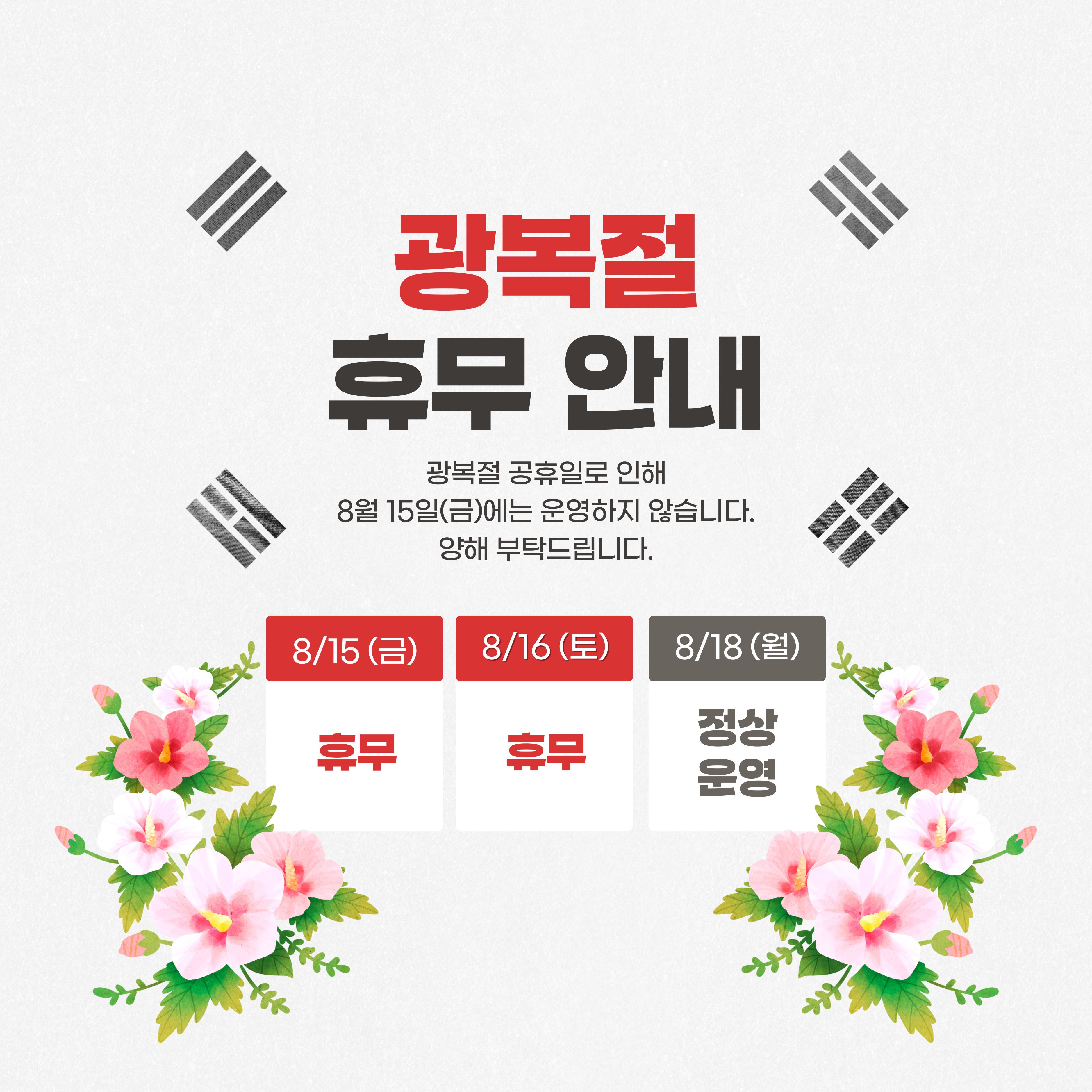 8/15(금), 68/16(토), 8/17(일) : 휴강