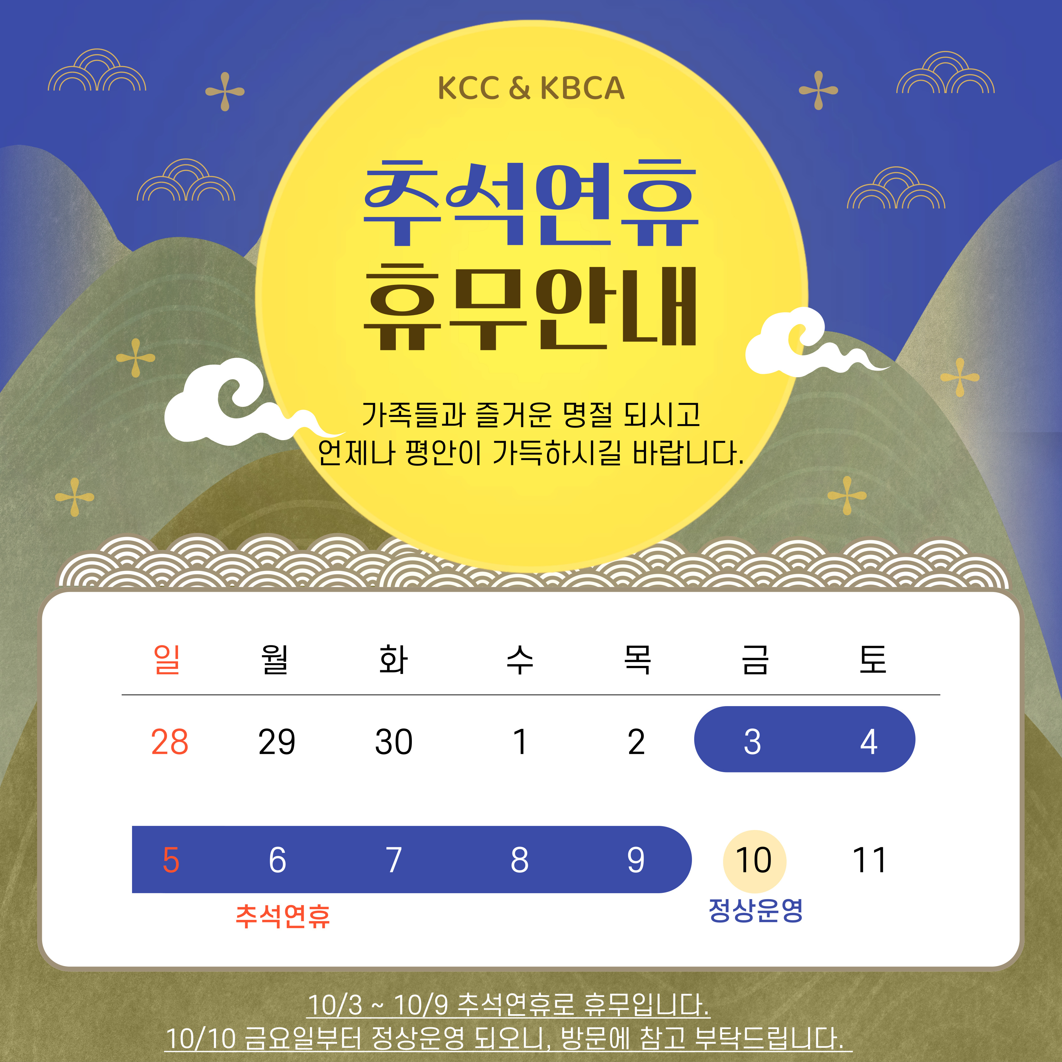 안녕하세요 강승희요리실용전문학교 & 강승희제과제빵커피학원입니다.10월 추석연휴 휴무안내 드립니다 ! 10/3 ~ 10/9 추석연휴로 휴무입니다.10/10 금요일부터 정상운영 되오니, 방문에 참고 부탁드립니다 !가족들과 즐거운 명절 되시고 언제나 평안이 가득하시길 바랍니다.