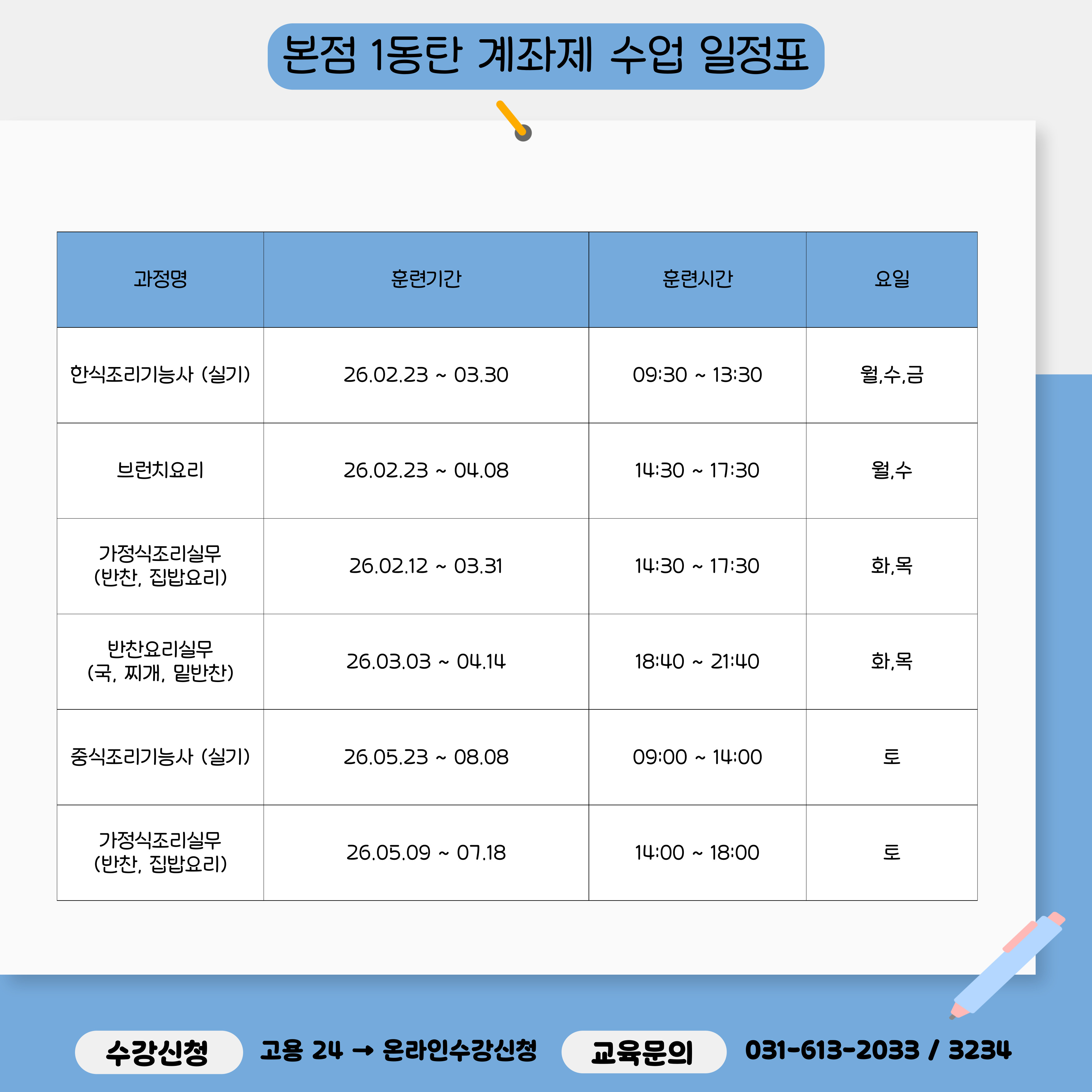자세한 일정 및 수강 문의는 본원으로 연락주세요.