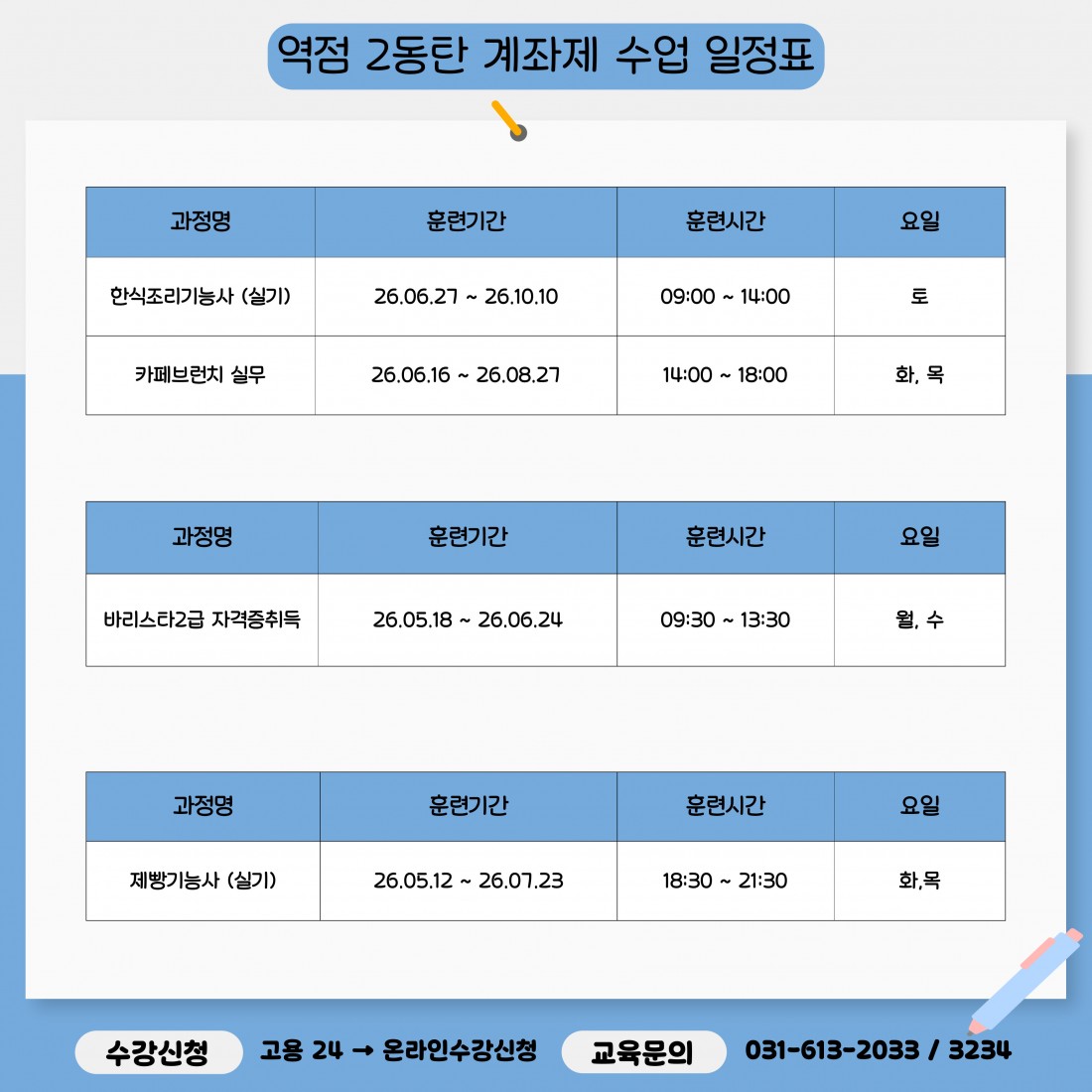 자세한 일정 및 수강 문의는 본원으로 연락주세요 !